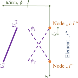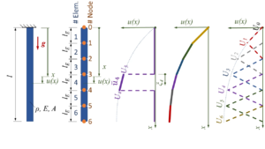Step C: Lineare Trial-Funktion im Element 4Step B: Diskretisierung in Elemente und Knoten.Überlagerung der Trial-Functions.Einführung der Trial-FunctionsStabmodell im Erdschwerefeld.